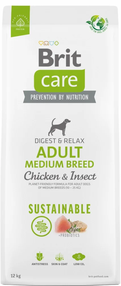 Brit Care Dog Sustainable Adult Medium Breed Chicken+Insect 12 kgskladem 13 ks957 Kč/ ks854 Kč bez DPH