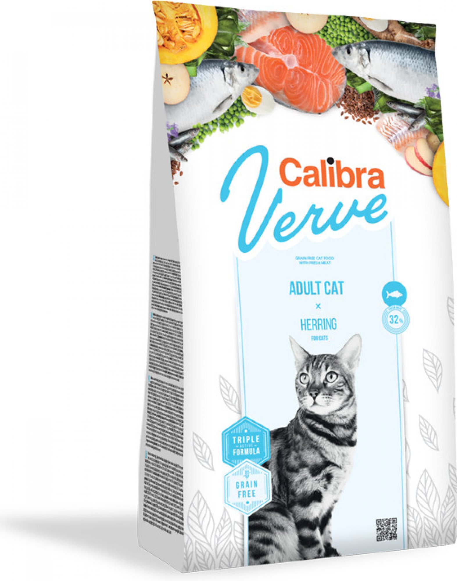 Calibra Cat Verve Adult Herring je kompletní krmivo bez obilovin s vysokým obsahem čerstvého rybího masa. Receptura je určena pro dospělé kočky.