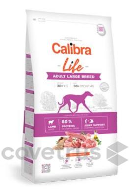 Calibra Dog Life Adult Large Breed Lamb je krmivem pro dospělé psy (nad 30 kg) velkých plemen s jehněčím masem. Hypoalergenní složení s nízkým obsahem obilovin (pouze rýže) je vhodné i pro citlivé zažívání. Velikost granulí je přizpůsobena fyziologické potřebě velkých psů. Kvalitní jehněčí protein je součástí bílkovin živočišného původu, které tvoří celých 80 % z celkového obsahu bílkovin v receptuře. Receptura je sestavena jako monoproteinová - pouze jeden zdroj živočišných bílkovin. Chondroprotektiva průběžně pečují o namáhaný kloubní aparát psů velkých plemen. A o správnou funkci trávicího traktu se postarají prebiotika a také extrakt z Yuccy schidigera podporující střevní mikroflóru a výrazně redukující plynatost v zažívacím traktu.
