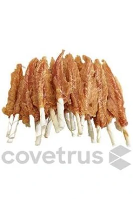 Masová pochoutka pro psy, kuřecí filety na tyčce z buvolí kůže.    Složení: 70% kuře, 30% buvolí kůže Analytické složky: 65% protein, 2,54% tuk, 3,7% popel, 0,6% vláknina, 18% vlhkost    Zajistěte psovi pitnou vodu. celý popis