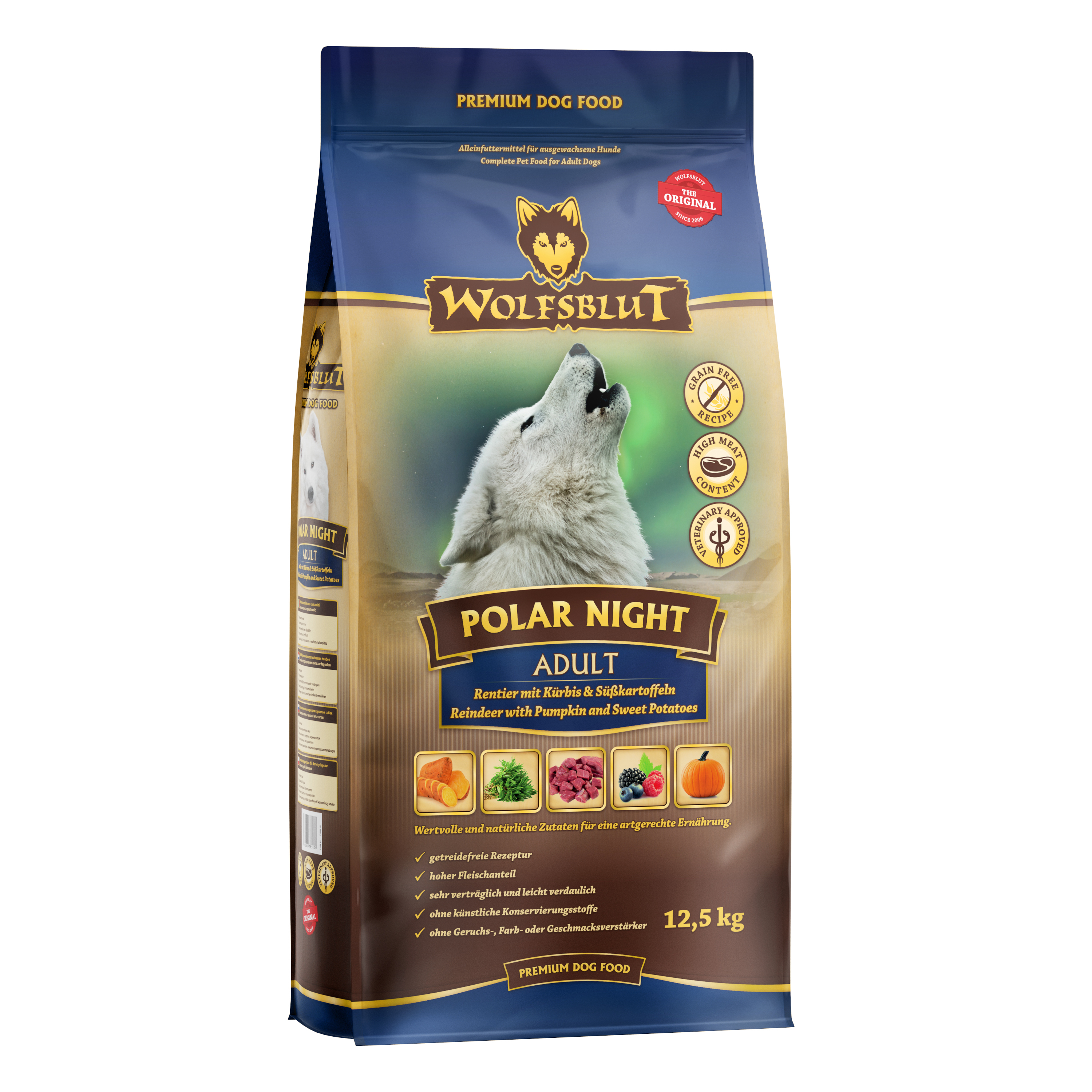 Jednotlivé složky potravy POLAR NIGHT ADULT byly sestaveny společně s veterináři tak, aby vyhovovaly přirozenému chování vlka kořisti a poznatkům o holistické výživě psů. Suché krmivo Wolfsblut je proto jedinečné.